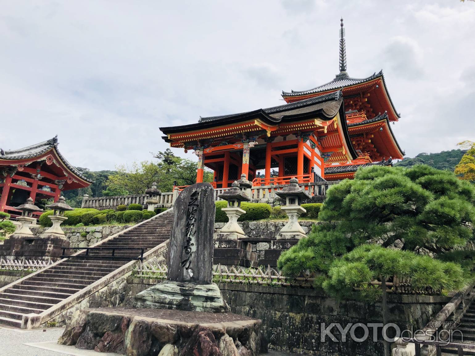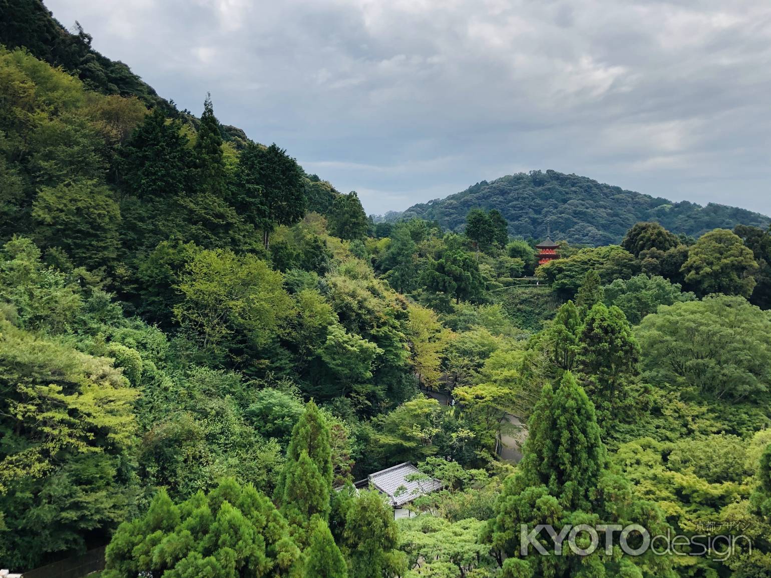清水の舞台は修復中ですが、そこから見渡せる眺めは絶景で見飽きることがありません。