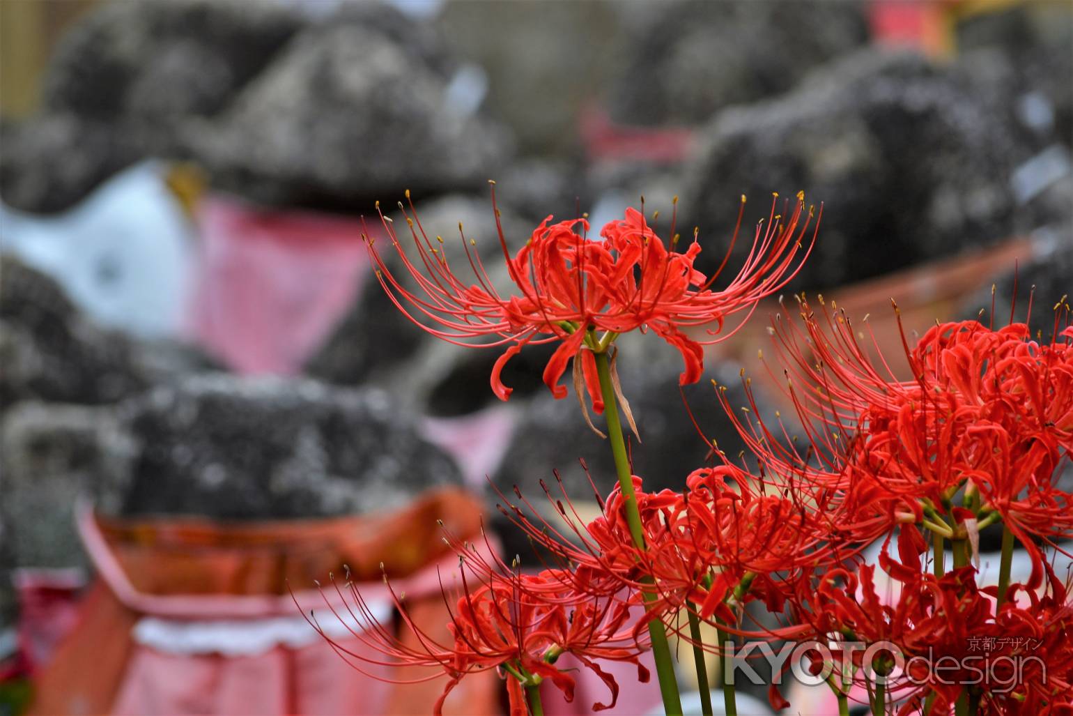 池がありお地蔵さんの間に咲く彼岸花は哀愁が漂います…が