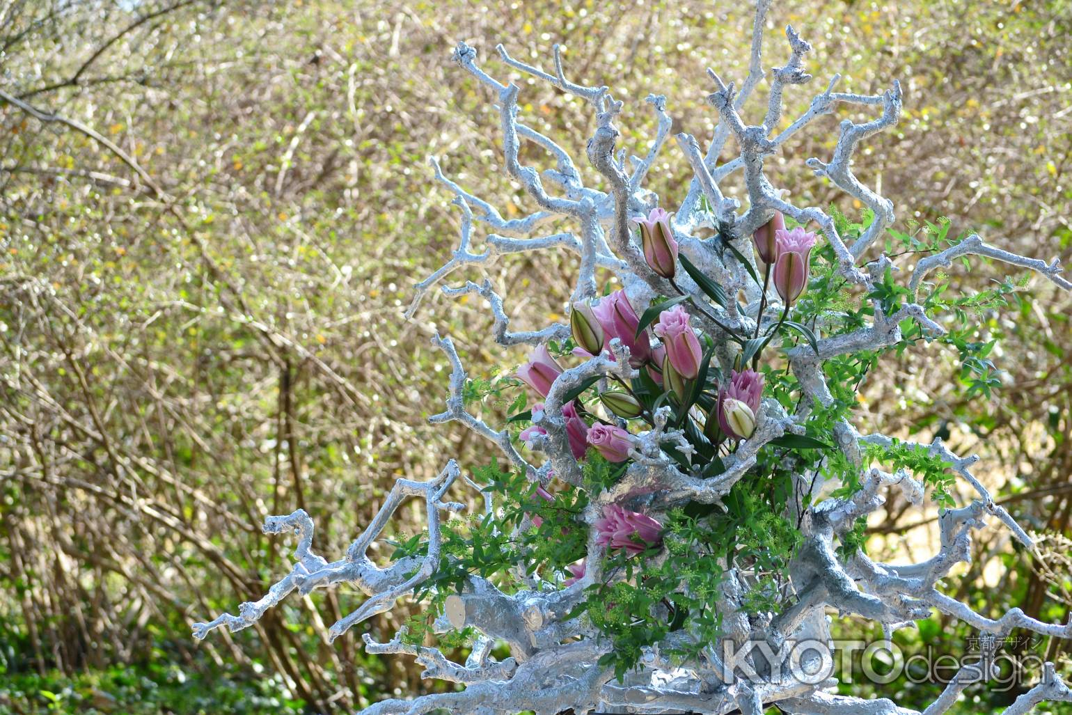 感染症対策の観点から初の野外展示! 今回は風や陽光の当たり方など時間帯による変化も大きくそれらの条件をいかに咀嚼し魅力的な作品をいけるかが見どころだそうです(*^ ^*)