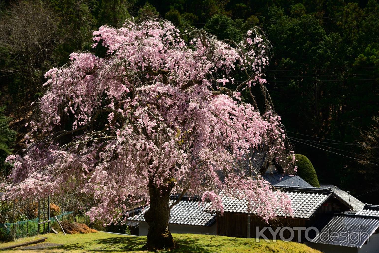 京北町にある小さなお寺ですが 紅しだれ桜が、大きく咲いてます。