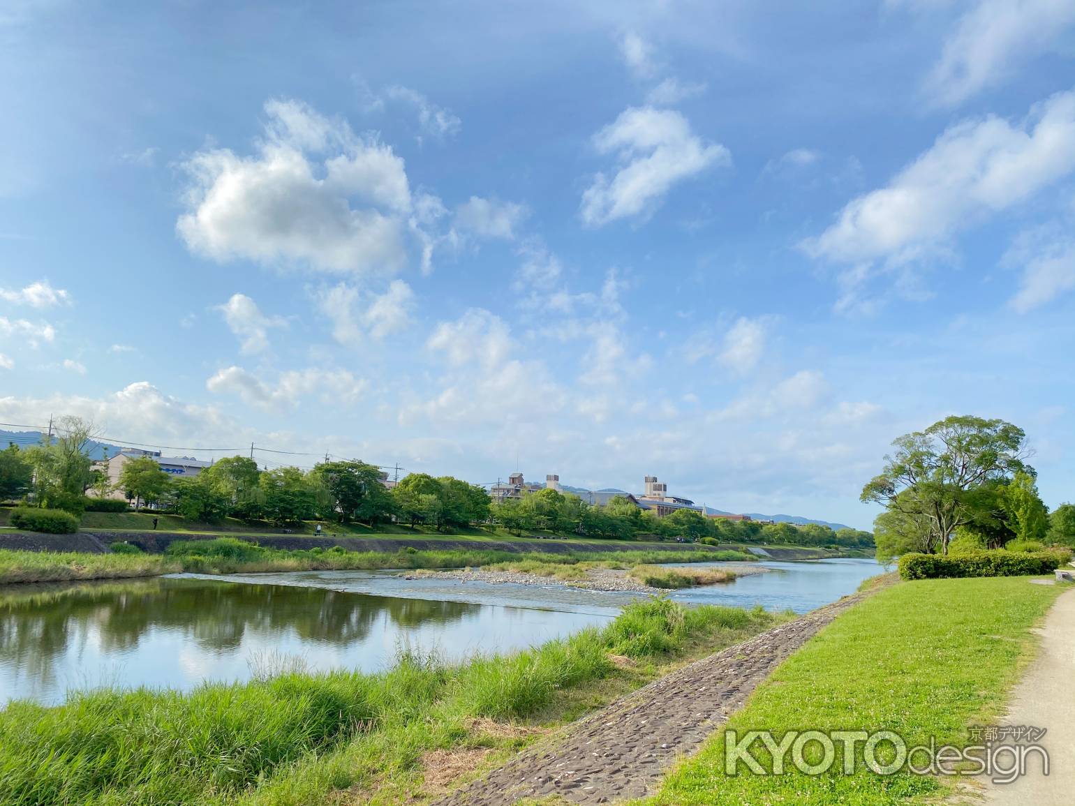 新緑あふれるこの時期の京都は,鴨川散歩にはもってこいの季節。