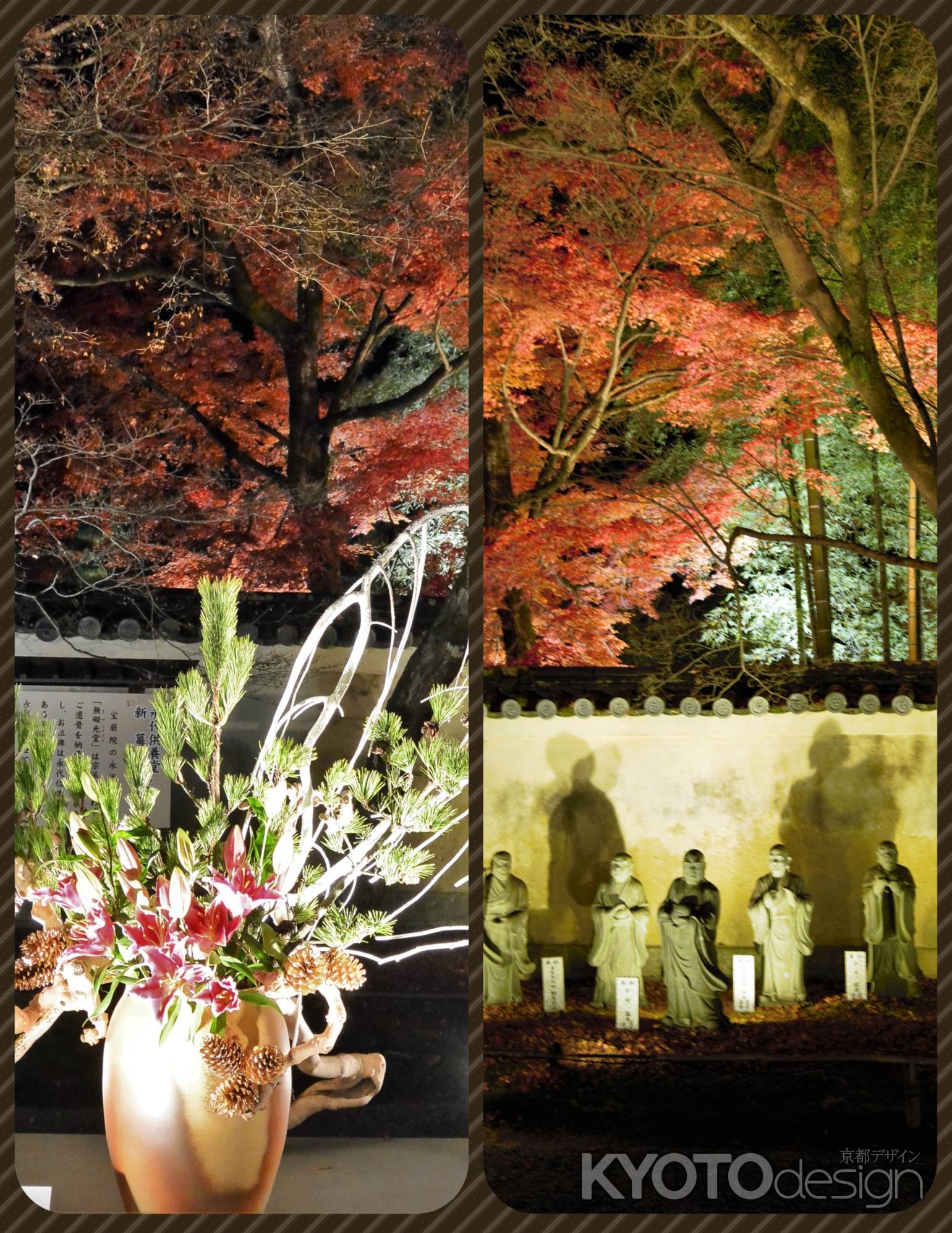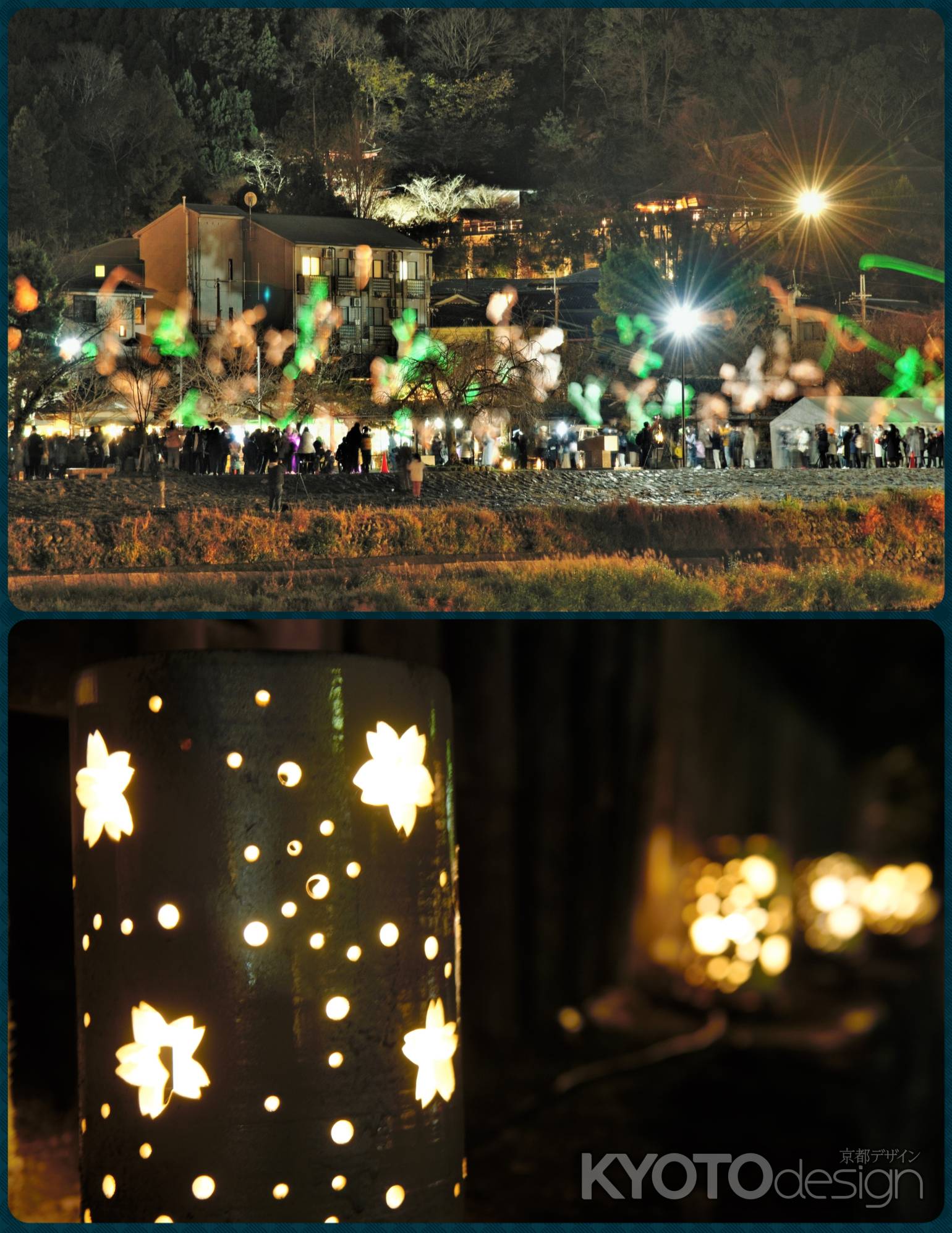嵐山花灯路では嵯峨・嵐山地域を露地行灯の「灯り」といけばな作品の「花」により演出され渡月橋や名勝嵐山、竹林の小径などのライトアップによる幻想的な風景を堪能することができ期間中は寺院・神社の特別拝観やライトアップなどが開催されます