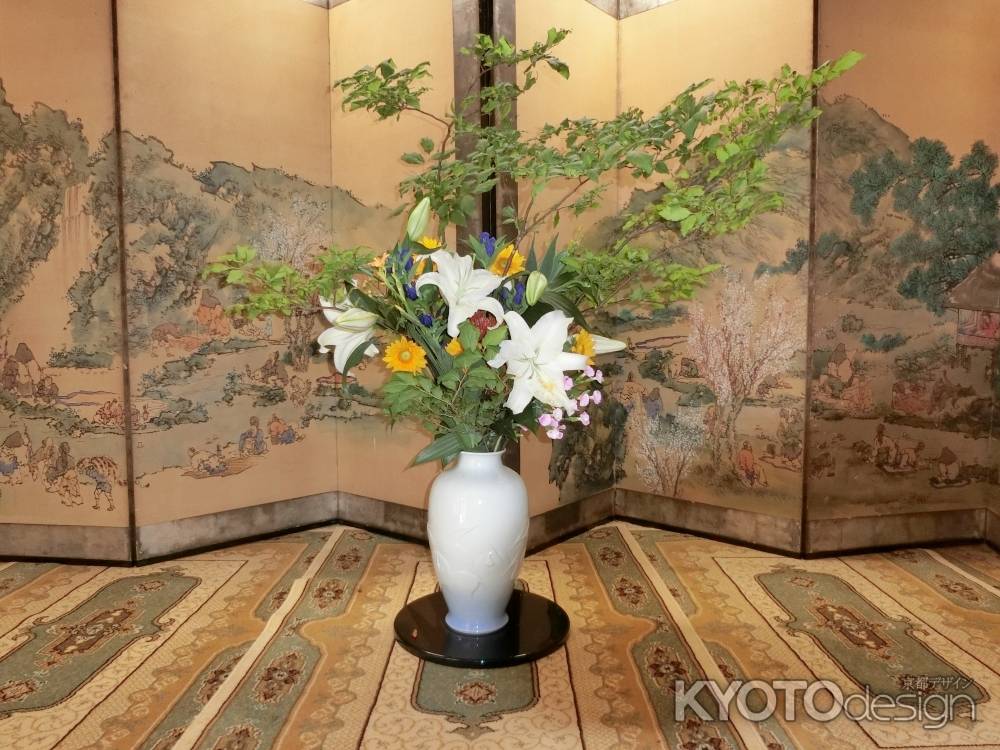 八坂神社前の祇園石段下から烏丸までの四条通りの有志のお店ではいけばなの名家名流が競い合うストリートギャラリーが開催されています。