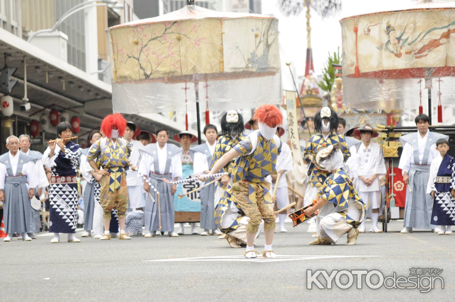 翌日の山鉾巡行の晴天を祈念し、各山鉾町の囃子方が町家から四条御旅所の間を往復する間、祇園囃子を奏する。長刀鉾は所定のコースを通り八坂神社にて囃子を奉納します。(はっきりとした時間は決まっていないため、出発を見るにはその鉾の近くで邪魔にならないように待っていましょう。)