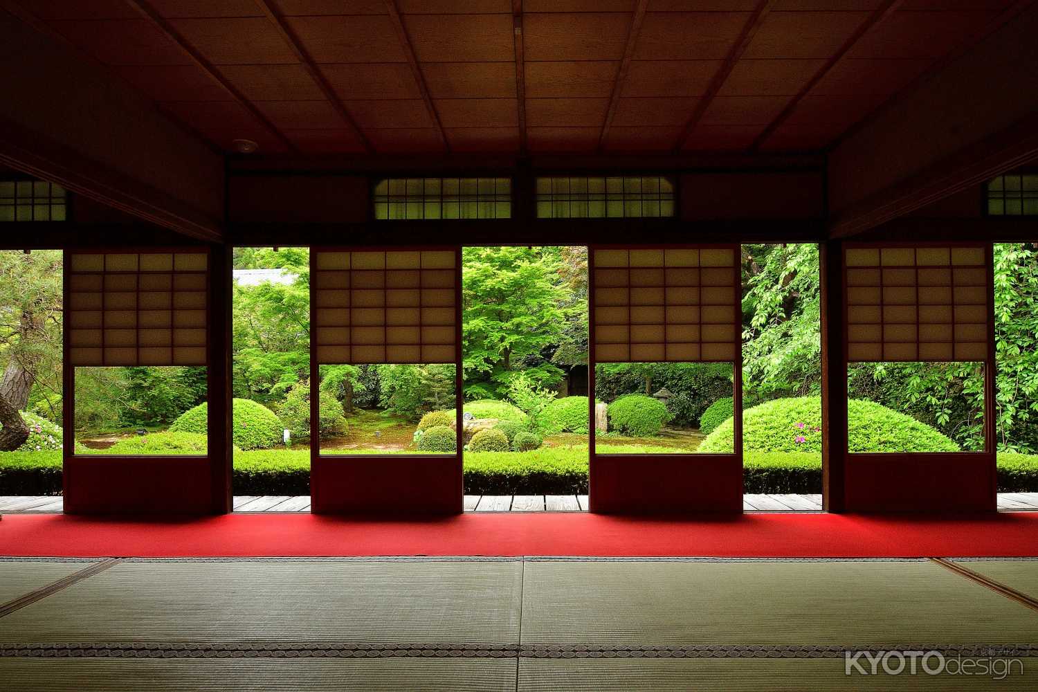 枯山水の坪庭「清浄の庭」、露地庭「侘びの庭」、方丈庭園「思惟の庭」「真如の庭」と名付けられた趣の異なる4つの庭は、国の名勝及び史跡に指定されています。いずれも苔が美しく緑一色でも美しい庭園ですが、春には躑躅や皐月、晩秋には紅葉が彩りを添えます。