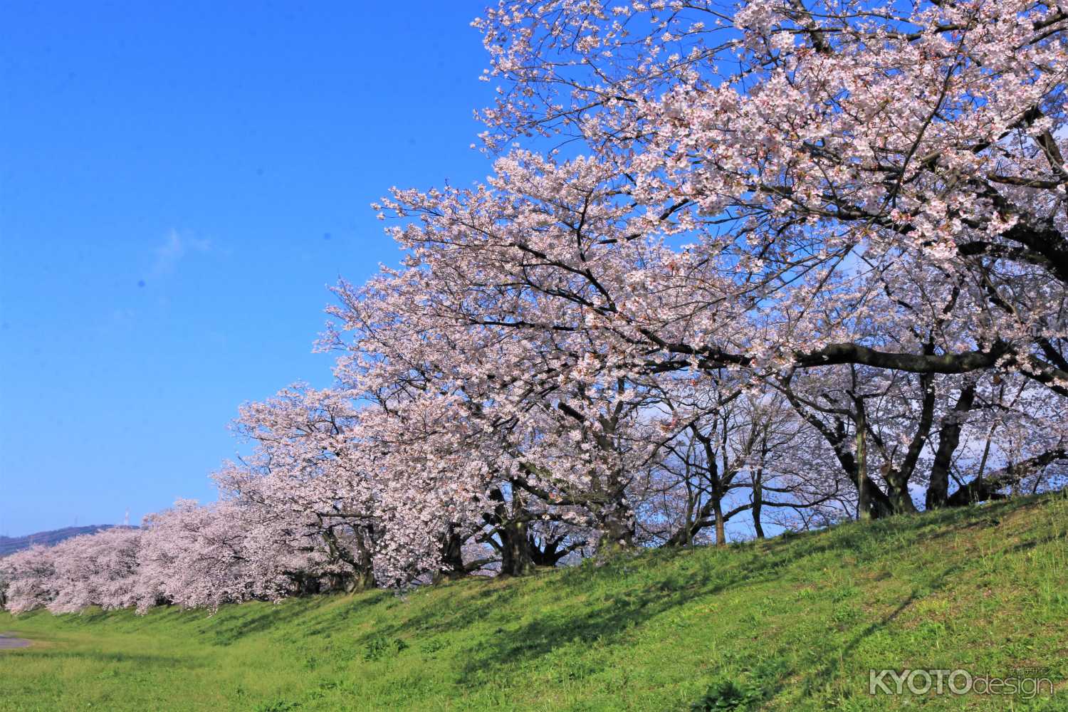 木津川と宇治川(淀川)の合流点から連なる堤防です。長さ1.4㎞に渡るソメイヨシノの桜並木は圧巻です。他にもここには野鳥が多いのでバードウォッチングをはじめ、草木・風景・自然の撮影に多くのアマチュアカメラマンが訪れます。