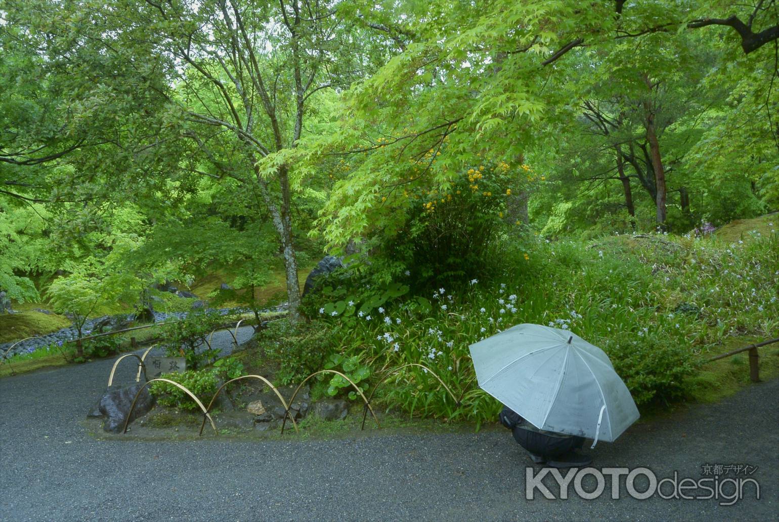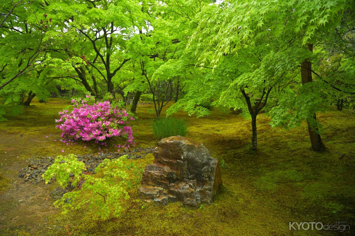 この出典は『碧巌録九十九則』によるもので「龍吟」は枯れ枝の間を抜ける風の音を表し「虎嘯」は大地より涌出る朗々たる響きを表す すなわち禅の悟りの境涯を表しています。 嵐山を借景にした枯山水庭園が春の桜、秋の紅葉と調和する景色は嵐山屈指という庭園です