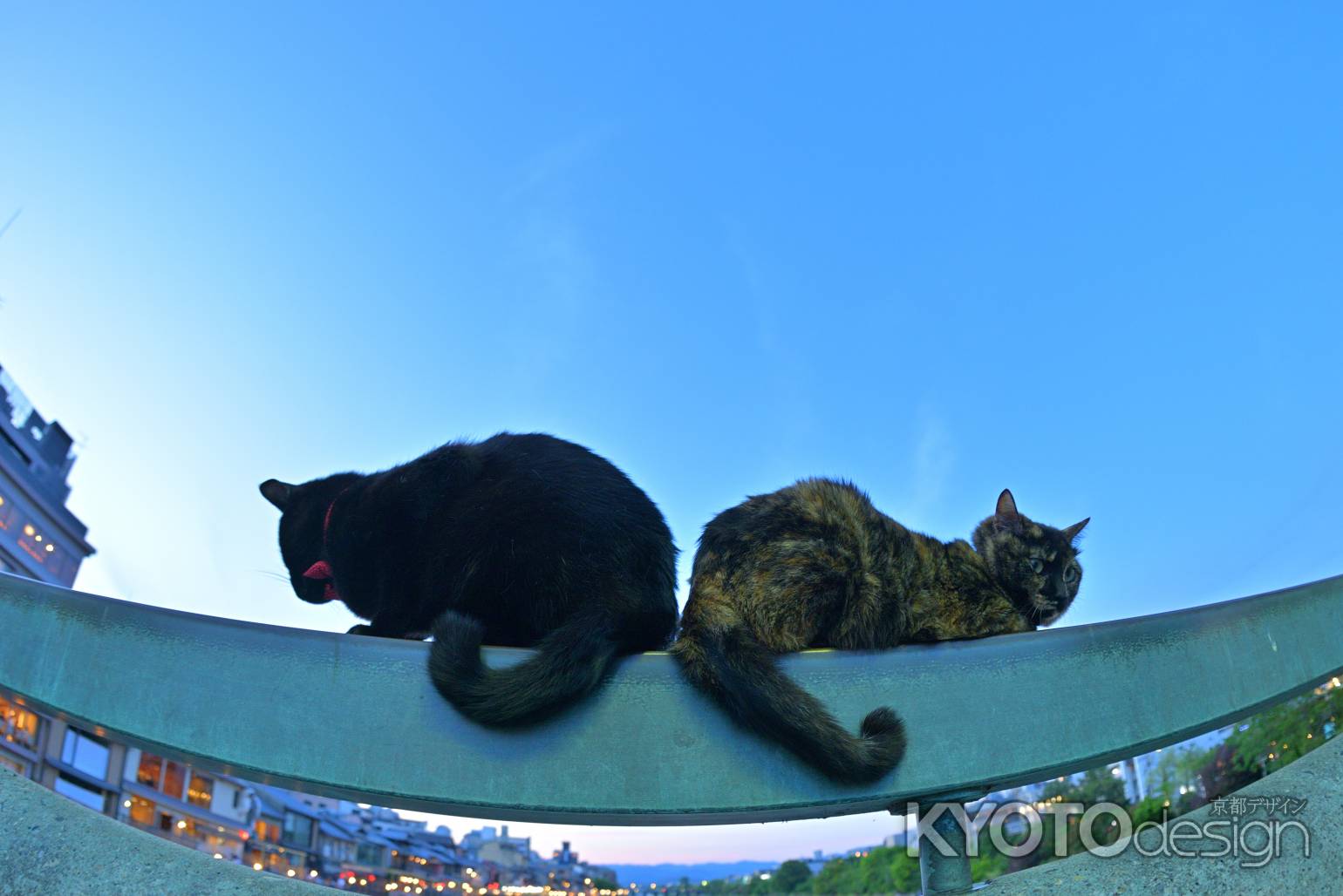 四条大橋にこんな風にネコちゃんが(◎_◎;)