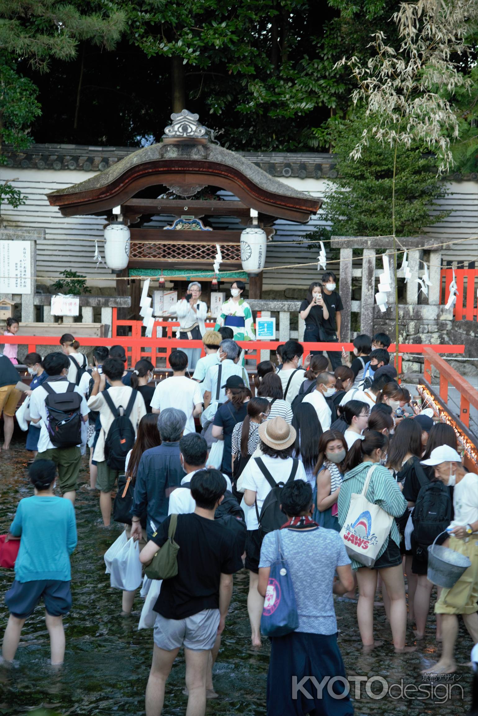 「足つけ神事」が行われます老若男女が集まり御手洗池で膝までを