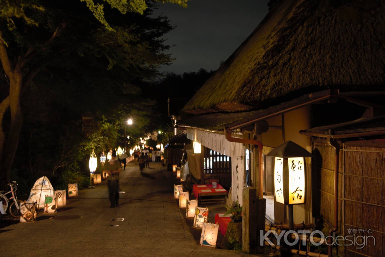 化野念仏寺千灯供養への来訪者を迎え入れるため、地域の地蔵盆を盛り上げるため、古い町並みが残る街道沿いに、手作りの小さな行灯の灯りを点したのがはじまりです。