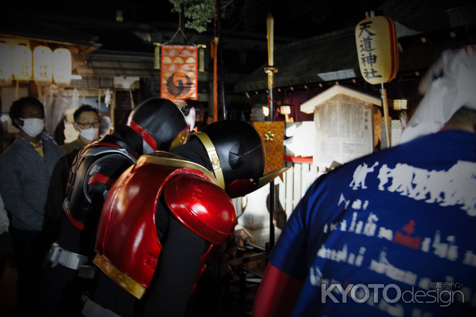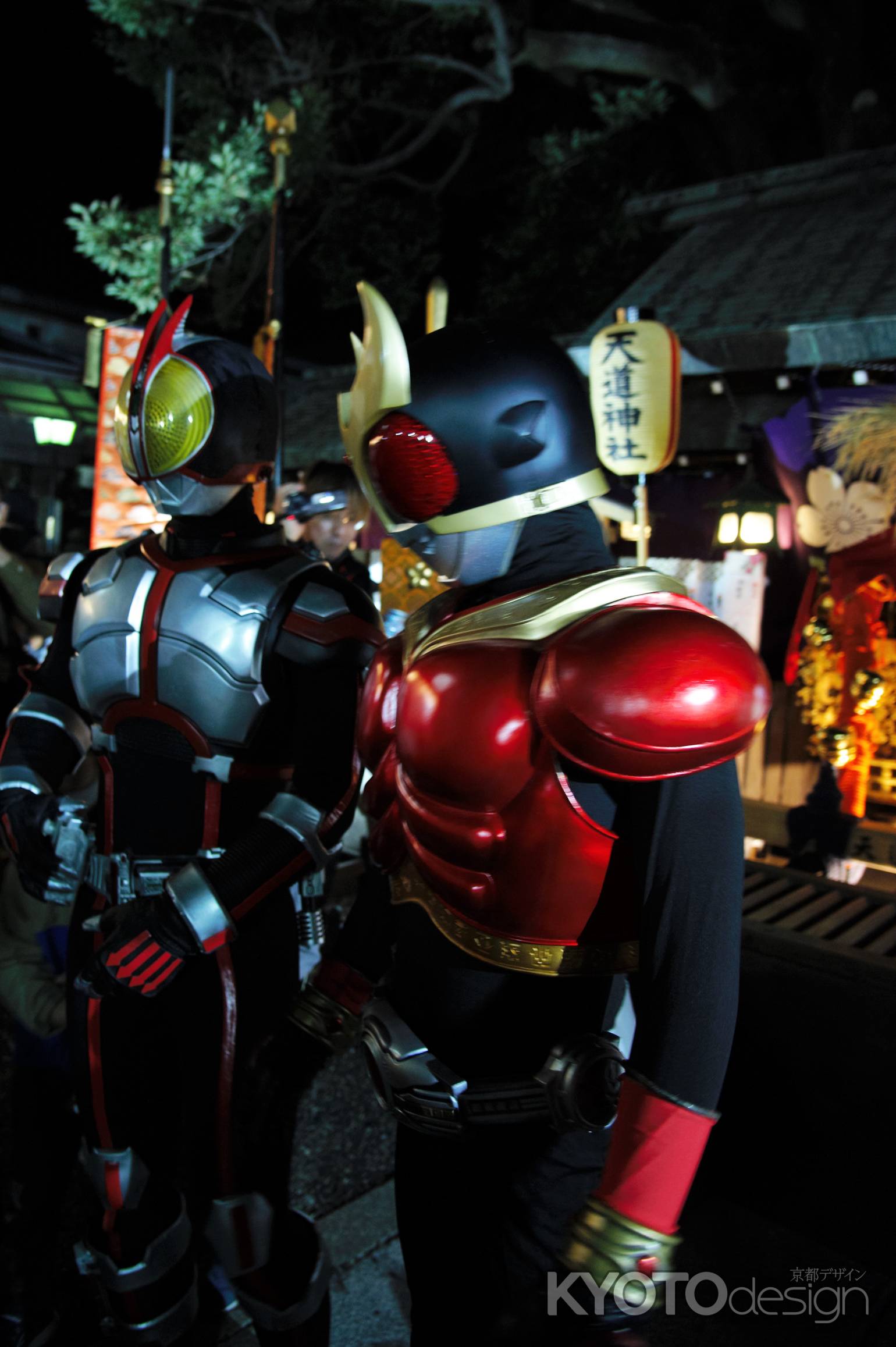 仮面ライダーさんが本殿前の御神輿へと向かわれました