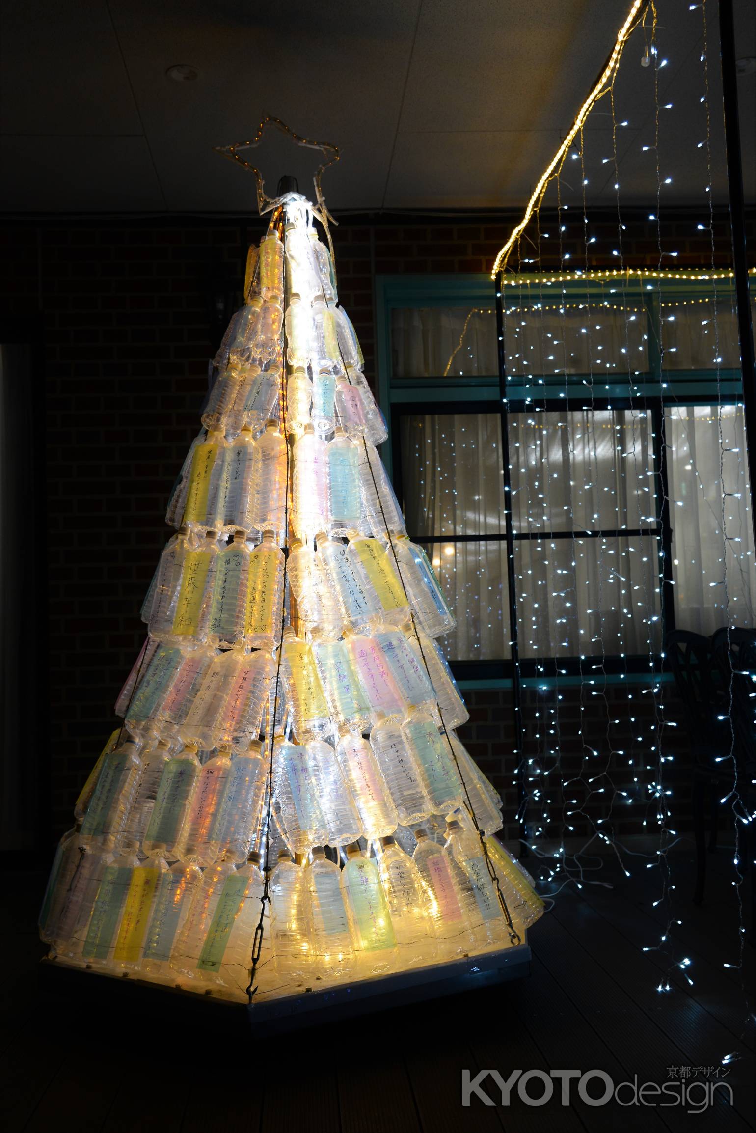 ツリーにはペットボトル1本に1枚ずつ平安女学院さんの