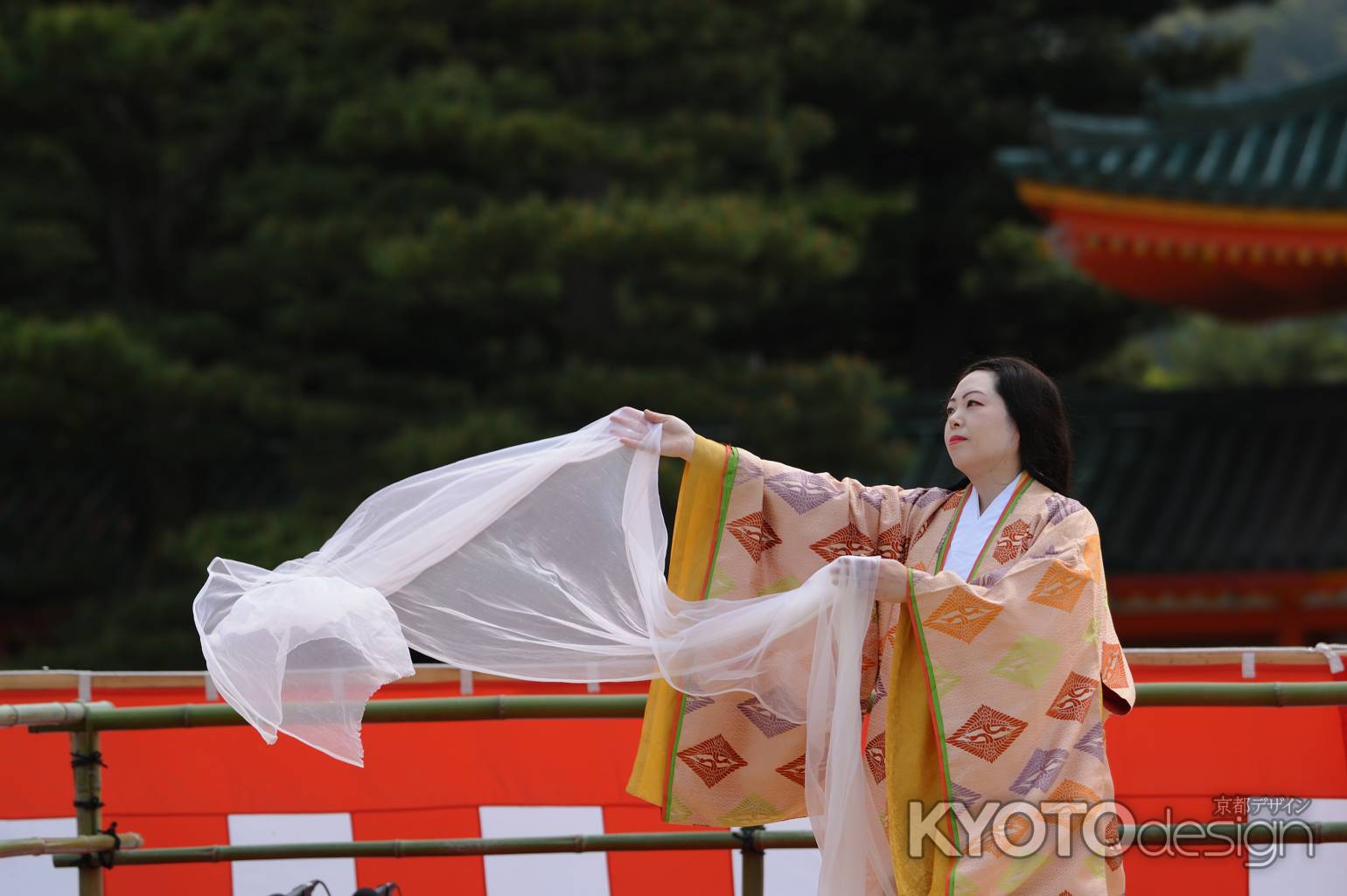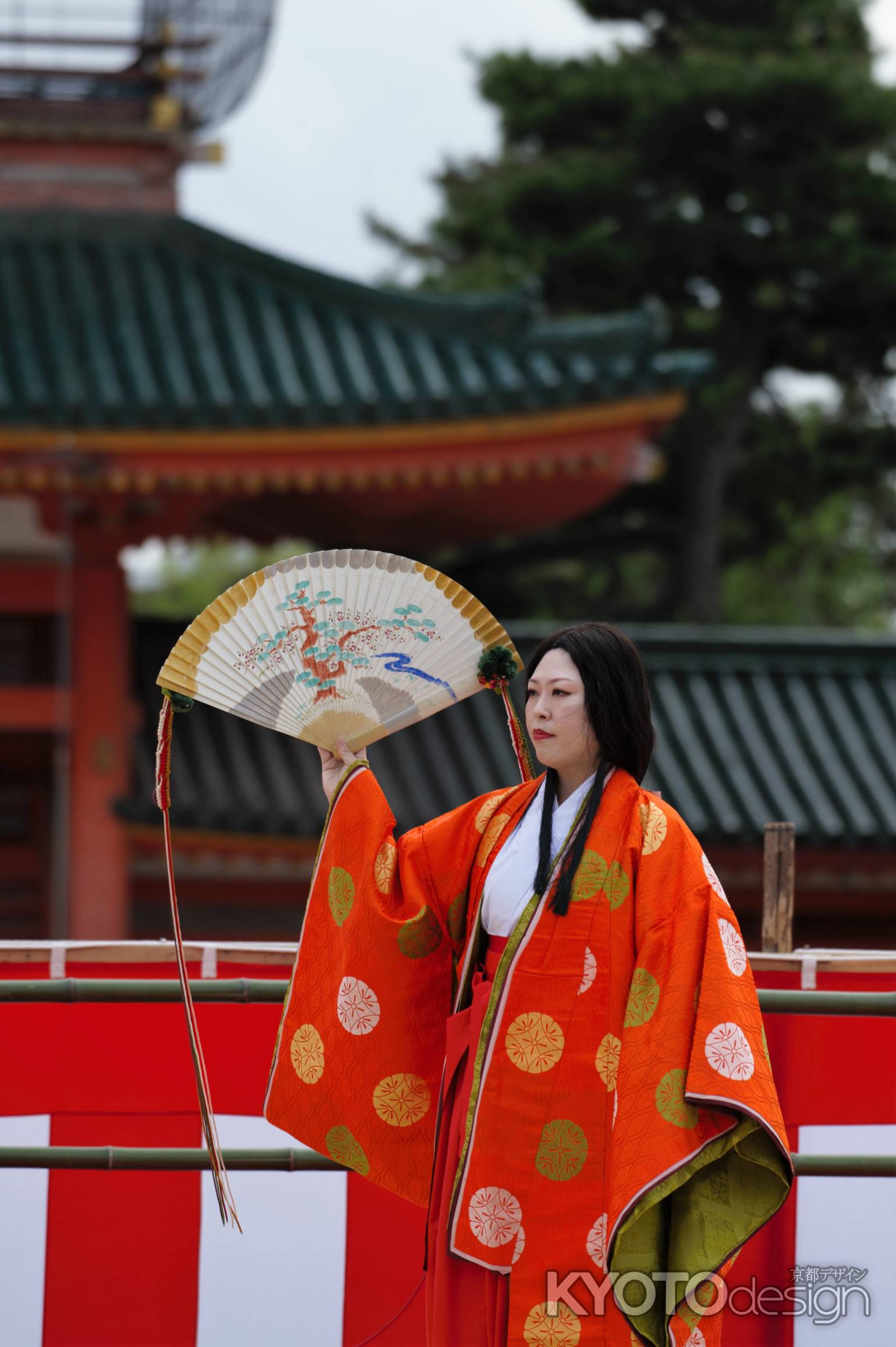 平安装束と檜扇や衣の優雅さに海外からの