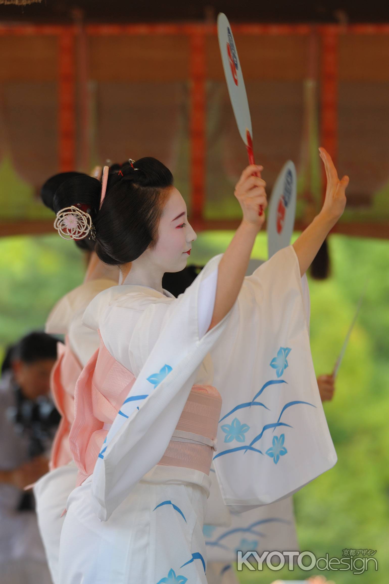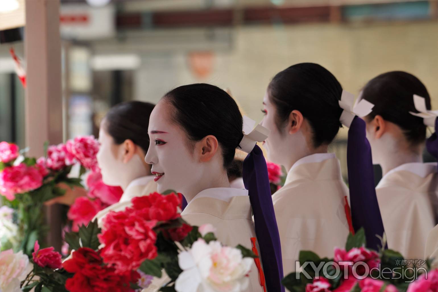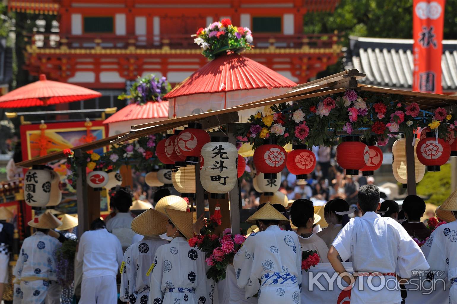 次は芸妓さん舞妓さんをのせた曳き車が同じく八坂神社さんへと