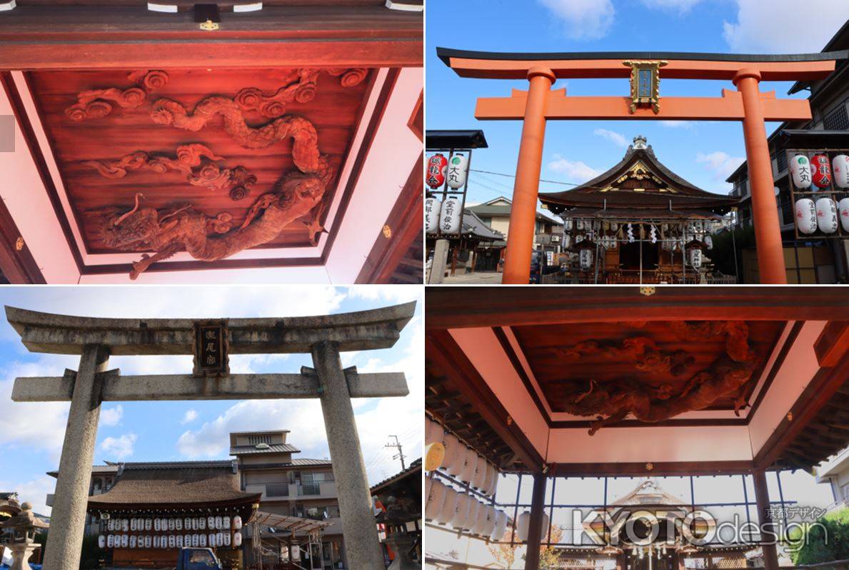 東福寺駅に近い瀧尾神社。拝殿の天井に施された龍の木彫りはすごいです。祇園祭の大船鉾の船首にあった龍と同じ流派の制作らしいです。禁門の変で消失した大船鉾が2016年再興された際には、船首の龍頭はこちらの龍を参考に作られたそうです。お正月には、舞台に昇って見られるかもしれません。