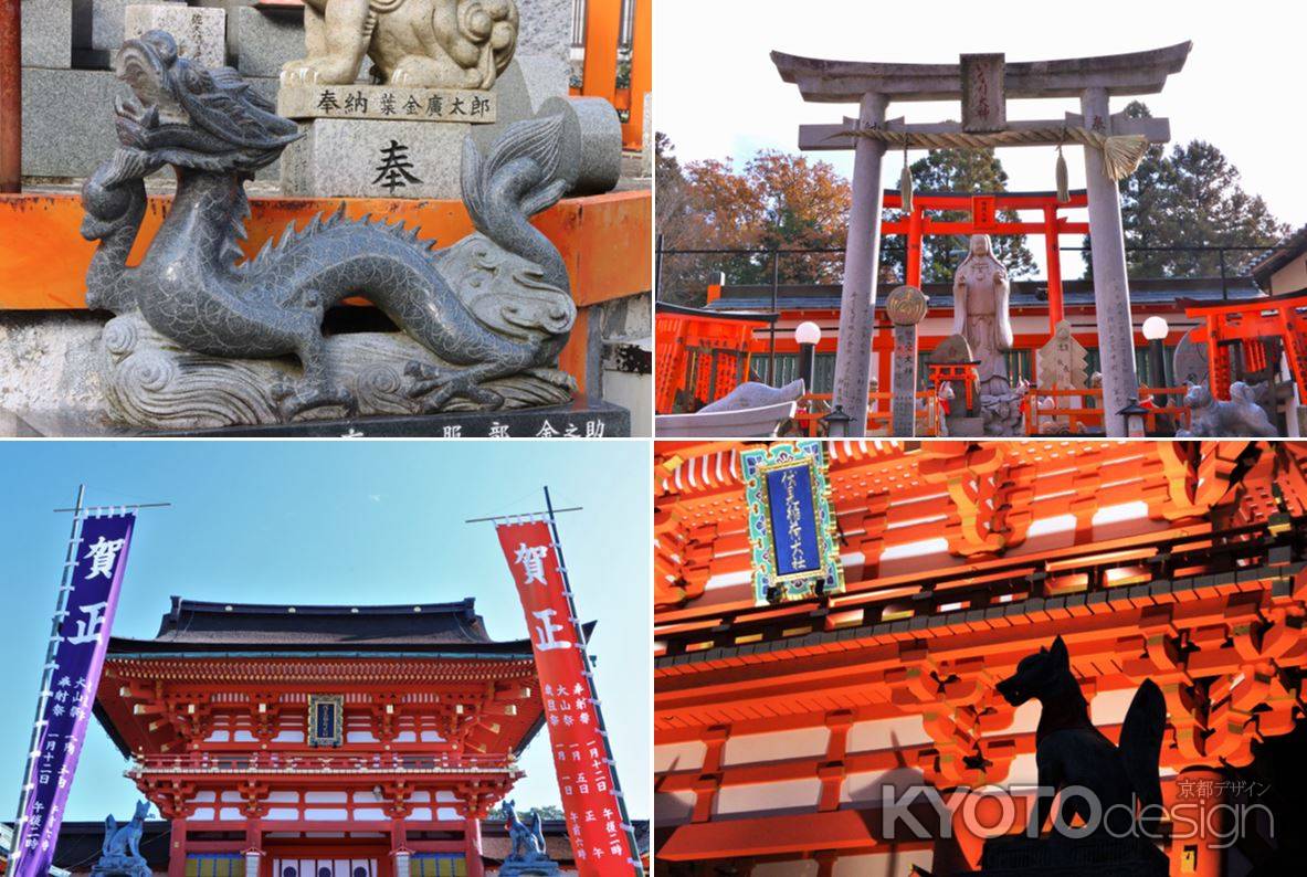 伏見稲荷大社の裏参道にある、いなり大神。小さな社ですが、ここに行くと全ての干支の動物の像が祀られています。自分の干支やその年の干支の像にお参りしてみてはどうでしょうか。