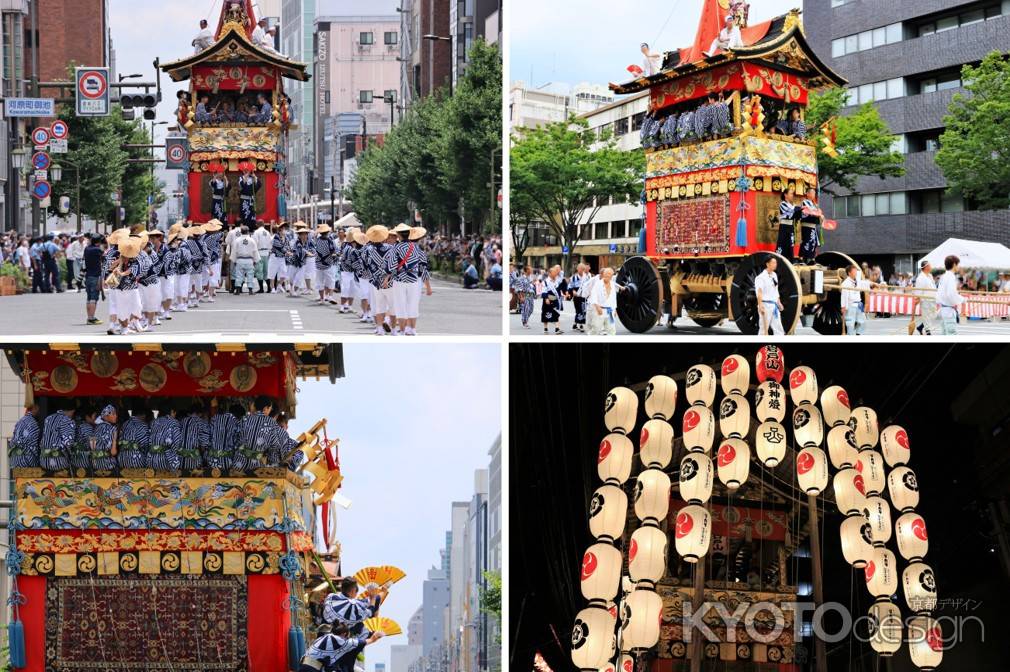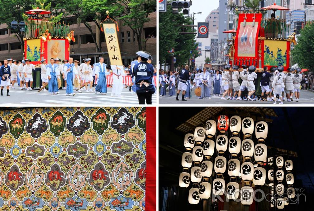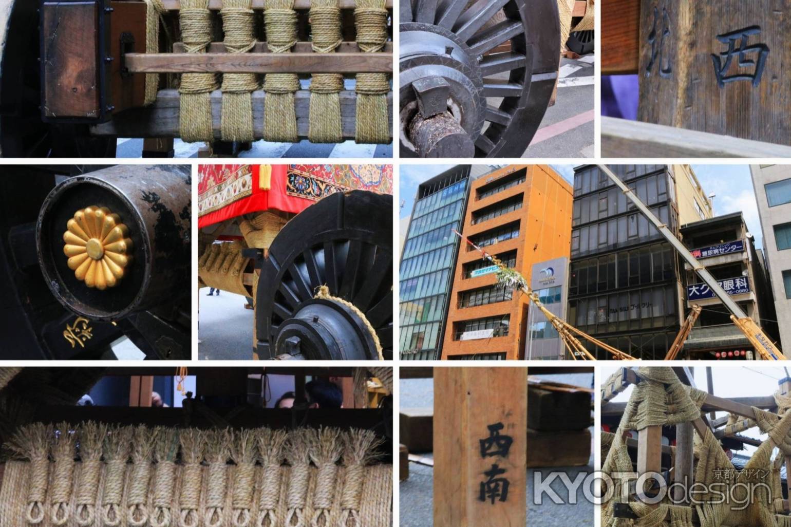 山鉾の豪華絢爛さ。美しい木工、金工、漆塗り、織物、刺繍、古今東西の名品。どの山鉾も、見飽きることなく眺めていられます。鉾立て、飾り立て、宵山、巡行、どんな場面もすばらしいです。前祭の山鉾について見どころをどうぞ。順番は、平成7年の前祭巡行順になっています。文の最後は、各山鉾のご利益です。