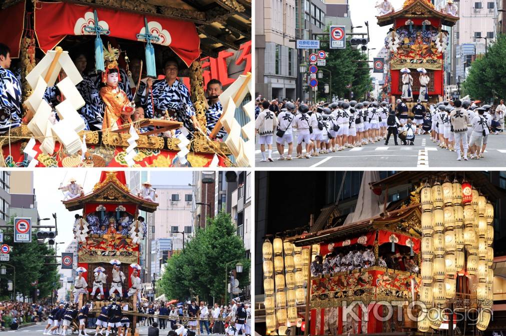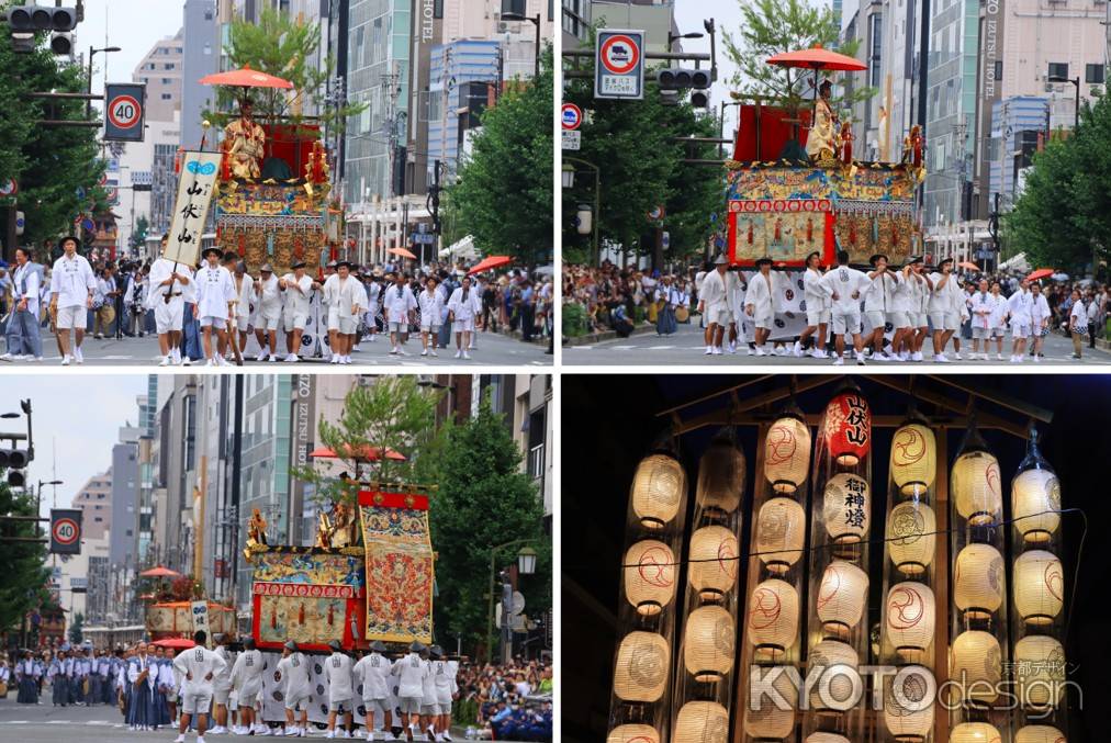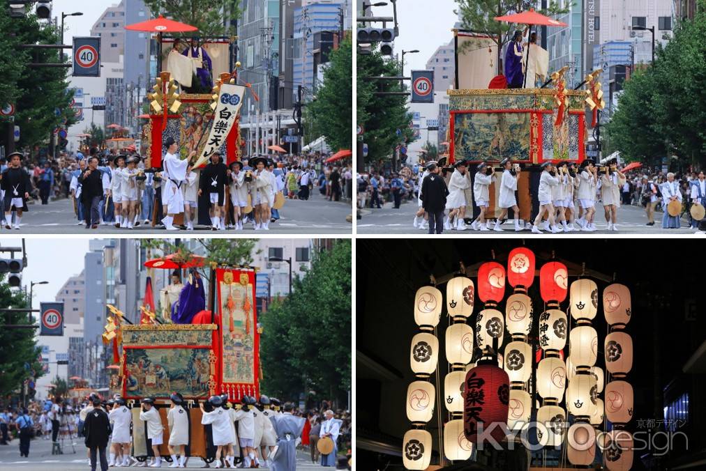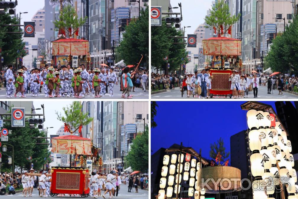鉾頭に新月型(みかづき)を付けていることに由来。真木のなかほどに月読尊をまつっている。宵山、駒形提灯の「月」の字がいい。厄除、疫病除。