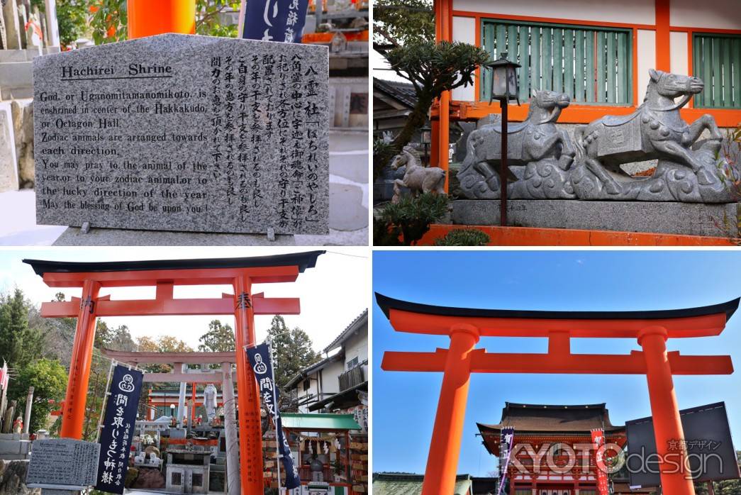 伏見稲荷大社の裏参道にある、八霊社さん。小さな社ですが、ここに行くと全ての干支の動物の像が祀られています。自分の干支やその年の干支の像にお参りしてみてはどうでしょうか。