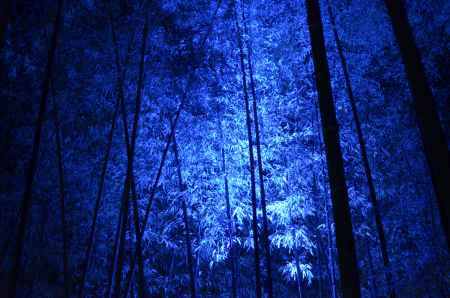 高台寺の夜間拝観、ライトアップで照らしだされた竹林。