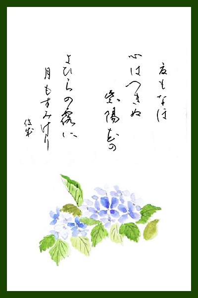 夏もなほ心はつきぬあぢさゐのよひらの露に月もすみけり