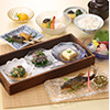 5、6月限定の御膳となります。小鉢 / 造り / 焼き物 / 冷鉢 / 田楽 / 吸物 / 香の物 / ご飯 / デザート。(※写真はイメージです。お料理の価格・内容は変動する場合がございます。予めご了承ください。)