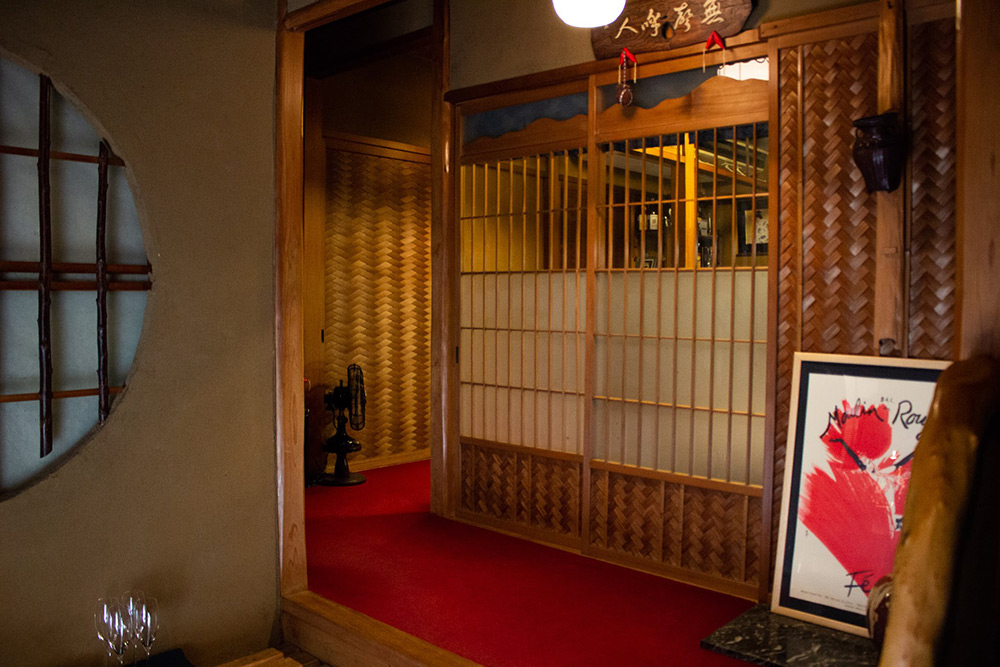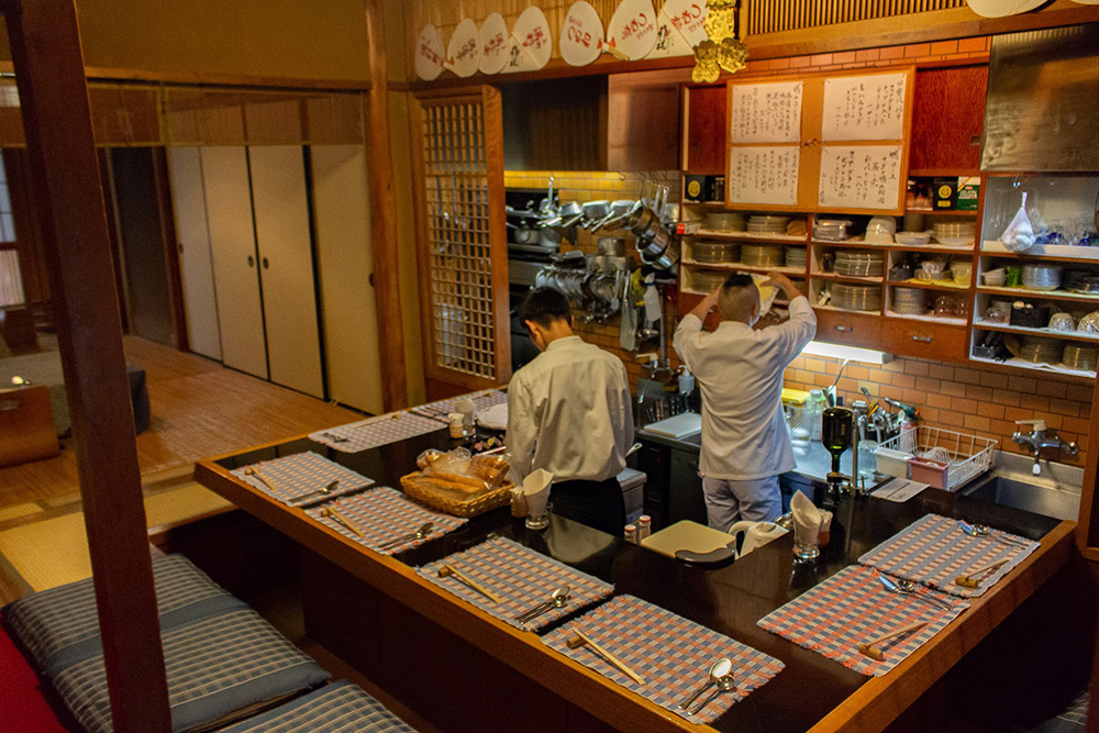 外観は一見すると敷居の高そうなお茶屋さんの建物ですが、のれんをくぐって店に上がると、あたたかい雰囲気のコの字型のカウンターが、優しくあなたを迎えてくれます。