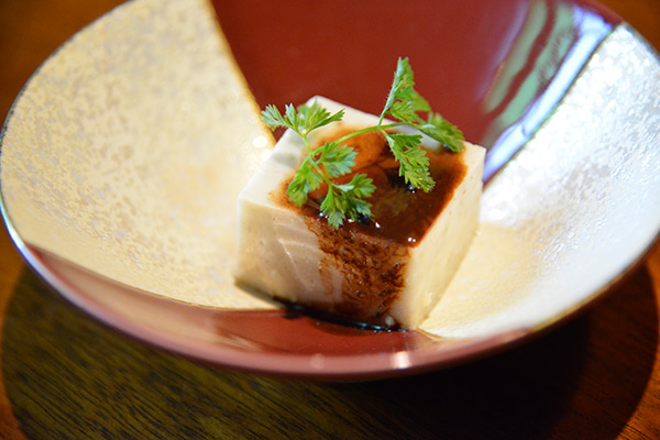 取材に伺ったのは四月。まず最初に京都一の傳の「一」の文字をかたどった一文字皿に盛り付けられた前菜からいただきます。続いて椀物、蒸物、焼きたての西京焼き、水物へと続く京懐石のコースです。菜の花など旬の素材が盛り込まれた前菜、桜香る道明寺に海老のそぼろを射込んだ桜蒸し椀、若筍煮と春を感じるお料理をいただいた後、いよいよ銀だらの「蔵みそ焼」です。