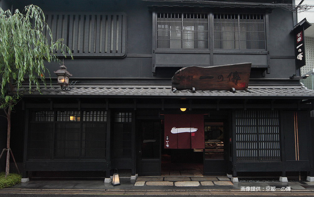 京都一の傳はもうすぐ創業100年を迎える、京都の代表的な伝統料理「西京漬」の老舗ブランドです。錦市場にほど近い京町家の情緒ただよう本店では、永年受け継がれてきた秘伝の西京漬「蔵みそ漬」を購入できるだけでなく、2Fではお食事をいただくこともできます。ということで錦市場をこえて京都一の傳 本店さんに行ってきました!四条通から柳馬場通りを北上、錦市場を横切ってしばらく行くと右手に趣のある建物が目に入ります。京都一の傳 本店です。