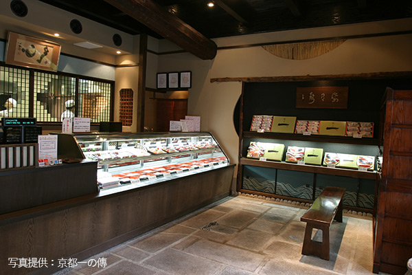 1階は、お買物フロアとなっています。贈り物やお返しの品としては勿論のこと、ご自宅用や京都のお土産にもぴったりです。購入した商品はその場で全国発送することも可能です。伺った日も多くのお客さんで賑わっていました。