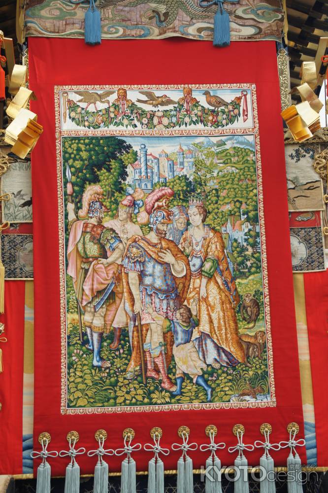 トロイの皇子へクトールが妻子に別れをつげる図の見送りが一番有名です。この見送は毛綴で織られており、16世紀後半頃ベルギーのフランドル地方で製作、江戸時代初期に輸入されたものと考えられ、国の重要文化財に指定されています。